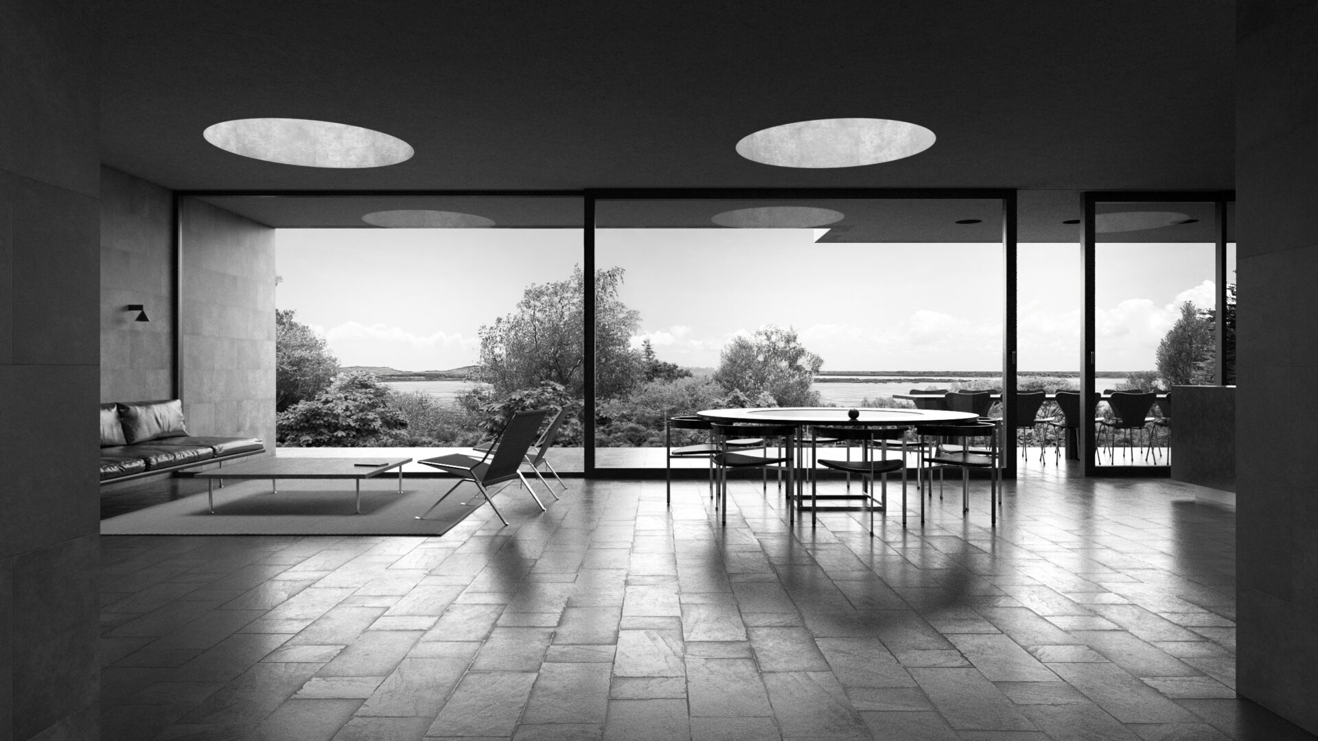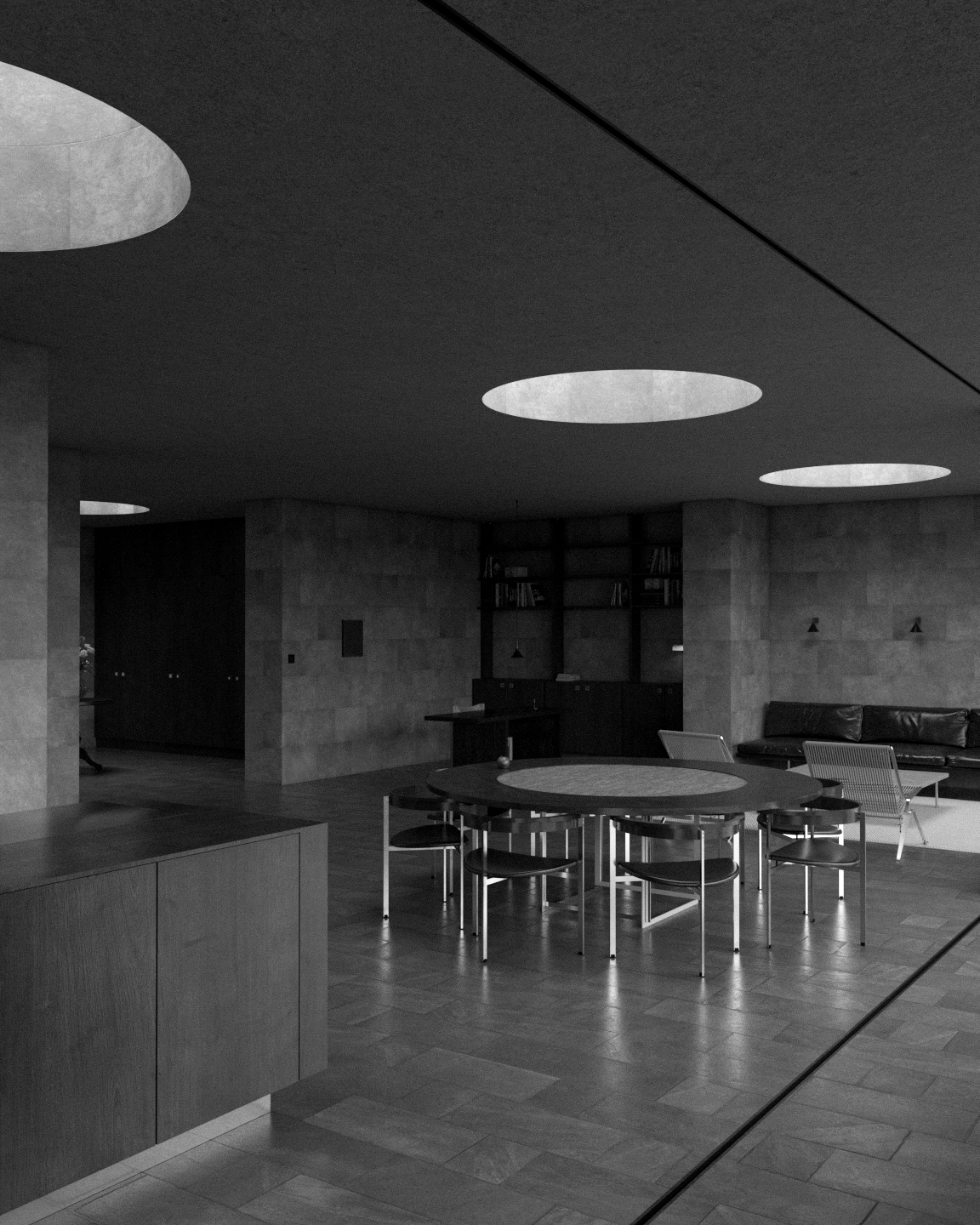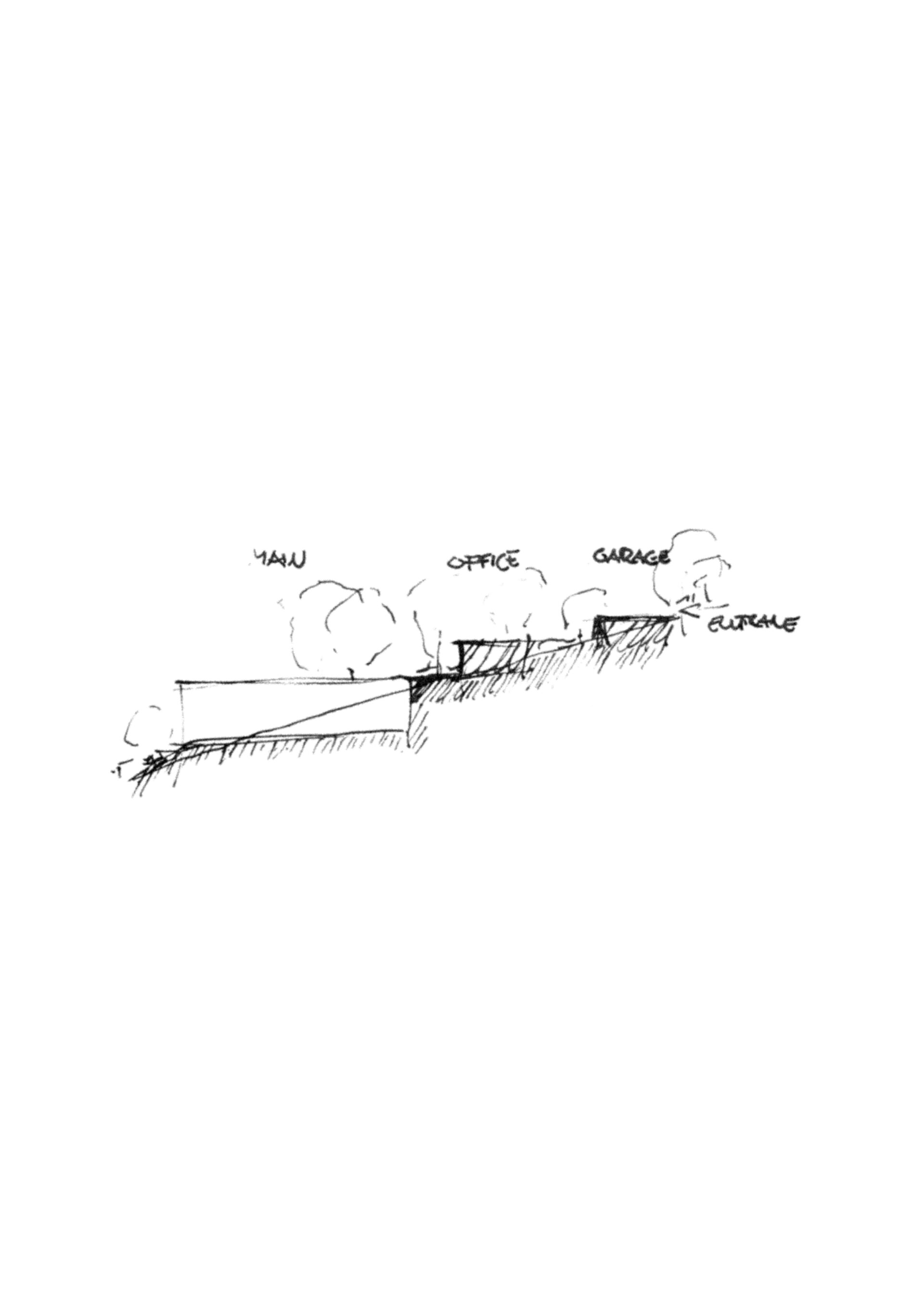 Casa Cava is a semi-underground residence designed to harmonize with the riverside landscape of La Juanita, minimizing visual impact while enhancing thermal comfort. The project consists of three structures – a garage, a guesthouse/office, and the main house – all connected by a slate-stone path that weaves through existing vegetation and natural features like a rainwater-collecting pond.